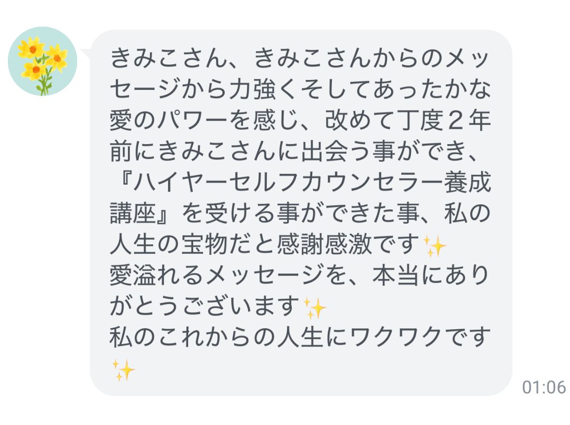 2年前にご卒業されたSさんから届いたLINE